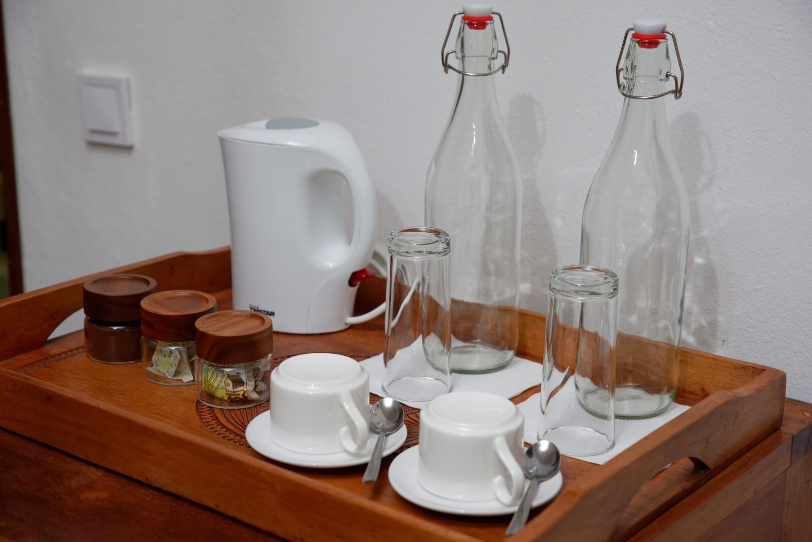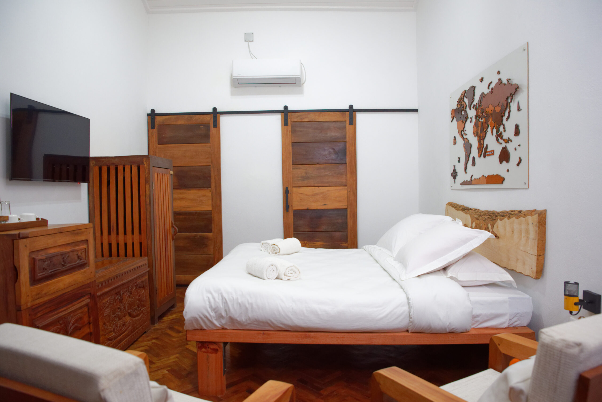 Chez Malagasy Grace Résidence, chaque chambre allie bien-être et respect de l’environnement. L’atmosphère y est douce et reposante. Chaque aménagement est pensé pour votre confort : literie moelleuse, éclairage LED chaleureux, eau potable servie dans de belles bouteilles en verre, salle de bain équipée d’un mousseur, etc.
